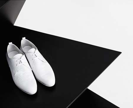 「フィフス・アベニュー・シュー・リペア」と呼ばれるこのブティックの内装は、白い壁と黒い躍動感のある陳列棚が基調になっている。