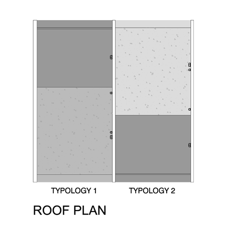 各々のユニットは2階吹き抜けのスタジオと居住空間を持ち、屋上のオープン・テラスへと続いている。