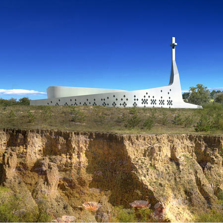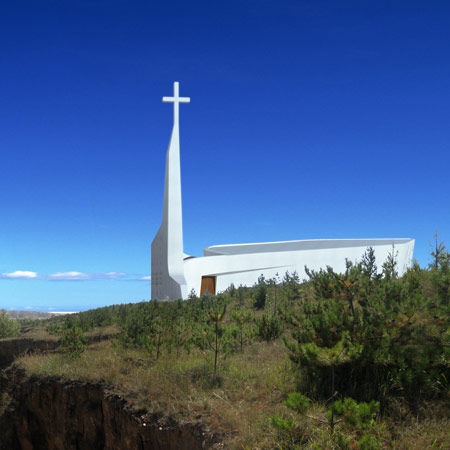 オルドス市内の丘に、環境に優しい建築として計画されたこの教会は、この土地の地形からインスピレーションを受けました。