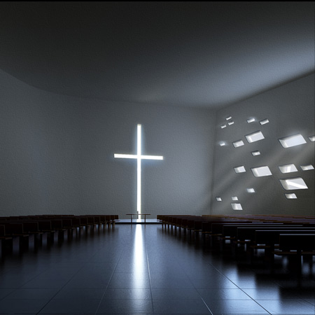 光と影が織りなす光景によって生まれるこの空間の深遠な雰囲気が、室内外の結びつきを一層強めます。この建築の構造は、祈りと祝賀のための場所に相応しい調和と平穏を反映したものと言えます。