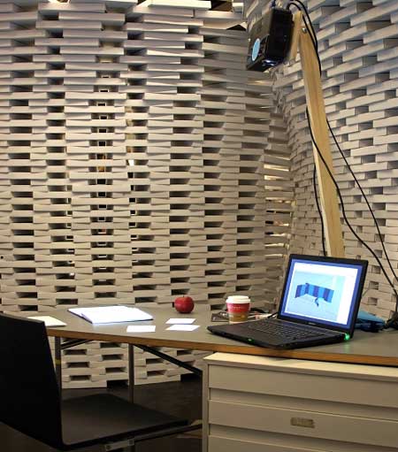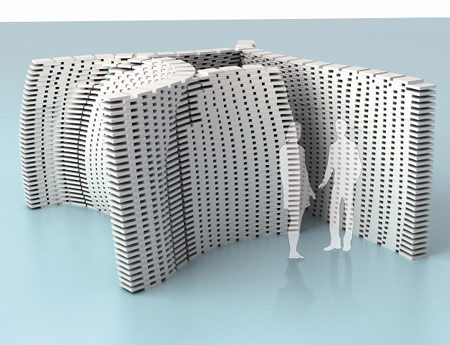 Booth-generatorと呼ばれ[D3] Schools展示会の一環であるこのプロジェクトは、設置個所の情報をコンピューターでプログラム化することにより実現したもので、作品はブース自体に要求される性質と調和した最も理想的な構造になっている。