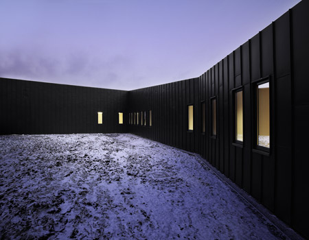 屋根に加え、黒い亜鉛の外皮で覆われたファサードが、折りたたまれたり広がったりすることで、景観と建築の間に存在する困難が表現されています。