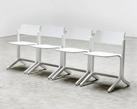 Stockholm 2010:先頃ストックホルムのデザイナー、シェーン・シュネック氏がStockholm Furniture Fair(ストックホルム家具フェアー)で展示した木製の椅子は、座部が片持ち梁のようになっていて、テーブルの端に掛けられるのが特徴だ。