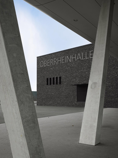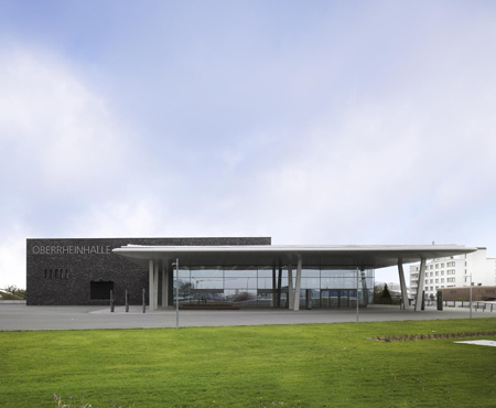 Die kontrastreiche Materialwahl mit Klinker für den Hallenbau und Stahl7Glas für das Foyer präsentiert sich die Oberrheinhalle als markante Architektur an der westlichen Stadteinfahrt nach Offenburg.