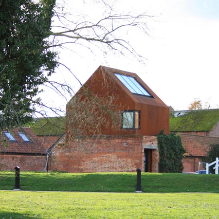 鳩小屋スタジオはその廃墟に存在しています。廃墟の横で組み立てられ、溶接が完了してからクレーンで挿入された構造体の張殻であるコーテンスティール製の「中身」はヴィクトリア時代の構造物の内部ボリュームを表しています。