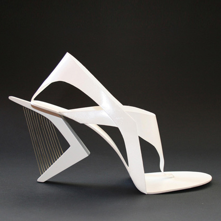 これはサンティアゴ・カラトラバ氏の建築をヒントにして、サラエボのデザイナー、ティー・ペトロビッチ氏がデザインしたハイヒールShoes inspired by the architecture of Santiago Calatrava by Sarajevo designer Tea Petrovic