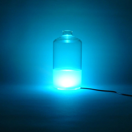 勿論、着色料や水がなくても照明として使用出来ます。つまり、一切手を加えなくてもそれだけで美しい照明器具の役目を果たすのです。今回展示した作品は試作品であり、若干修正を加えた後製品化する予定ですが、外観には大きな変更点はありません。