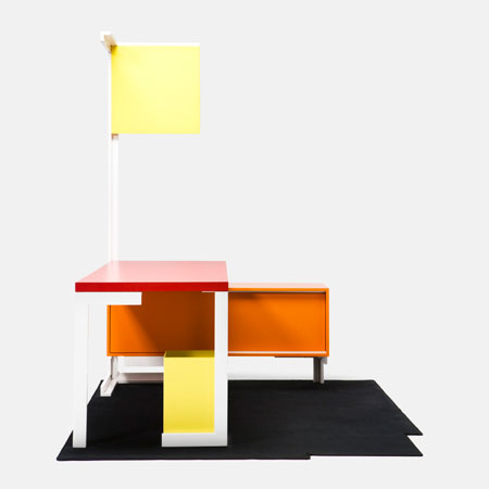 デーミッシュ・デナントは、クライン・ド・コニング氏の初のニューヨーク個展「ここで、このために」を2010年4月8日より5月14日まで開催することを、光栄に思います。一般に建築造形家として知られるド・コニング氏が初めて彫刻的な作品を発表します。この作品はテーブルとベンチまたは本棚と言ったように、様々な機能を持つ家具を巧みに形成ことができます。作品は積み上げたり切り離したりまたはあらゆる方向に回転することができる五つの建築的要素から構成されています。この作品は直接ド・コニング氏の空間的なインターベンション(介入)としての作品に関連するものですが、さらに重要な機能的見解を提示しています。