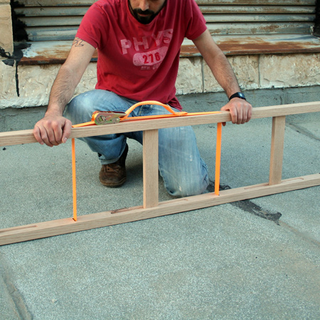 このストラップは歯止めで固定され、組み立てると2つの踏み段になる。