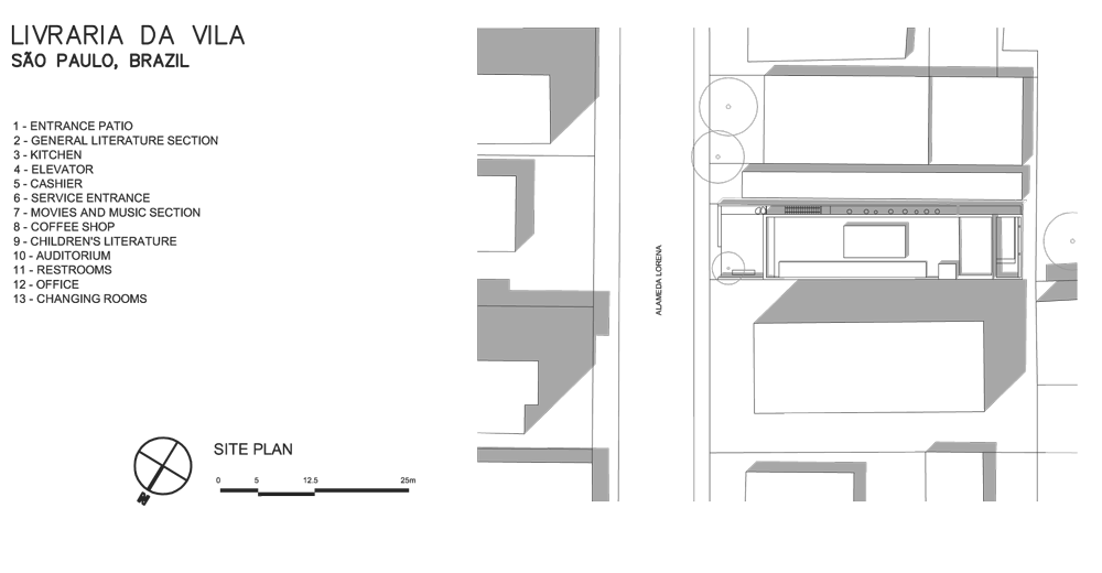 The Livraria da Vilaはサンパウロ市内の非常に狭い敷地にある2階建ての住宅を改装したものです。
