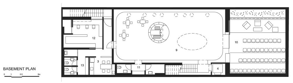 新たに増築された地下は子供専用のフロアーで、学習教室が開催できる小さな講堂が設置されています。