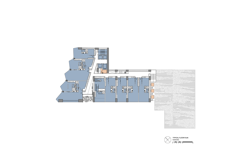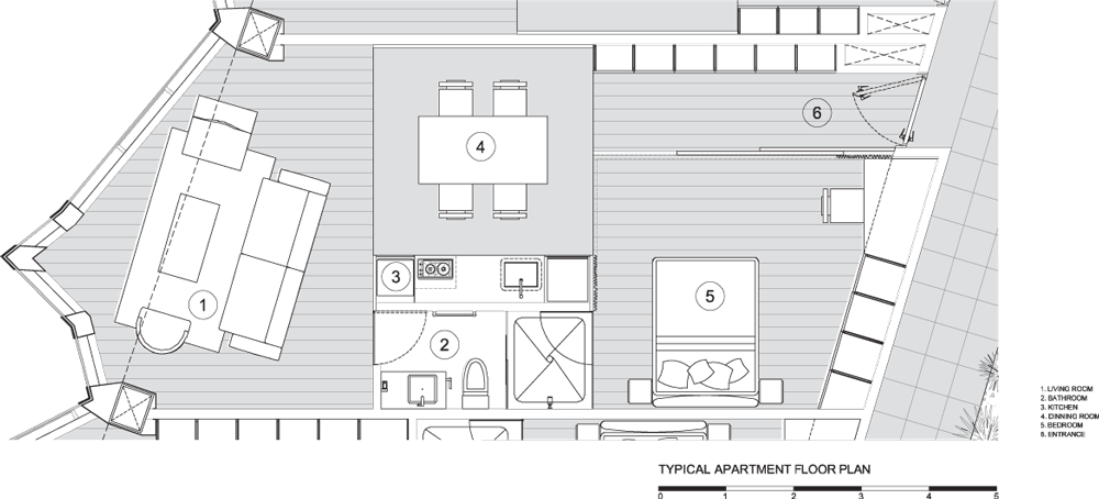 駐車場のスペースとして5階、アパートとして35階分がそれぞれ充てられています。その他にも、建物を維持管理する機械室や、ジム、プール、マッサージルーム、ジョギングルームなど居住者のためのスポーツや娯楽施設が収容されています。