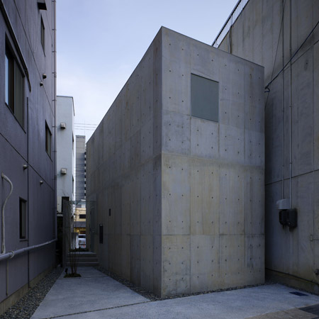 広島にある日本の建築設計事務所サポーズデザインオフィスによるこの住宅はオフセットコンクリートの枠組みに囲まれ、外壁と内壁の間にある種の三角形のテラスを作り出しています。