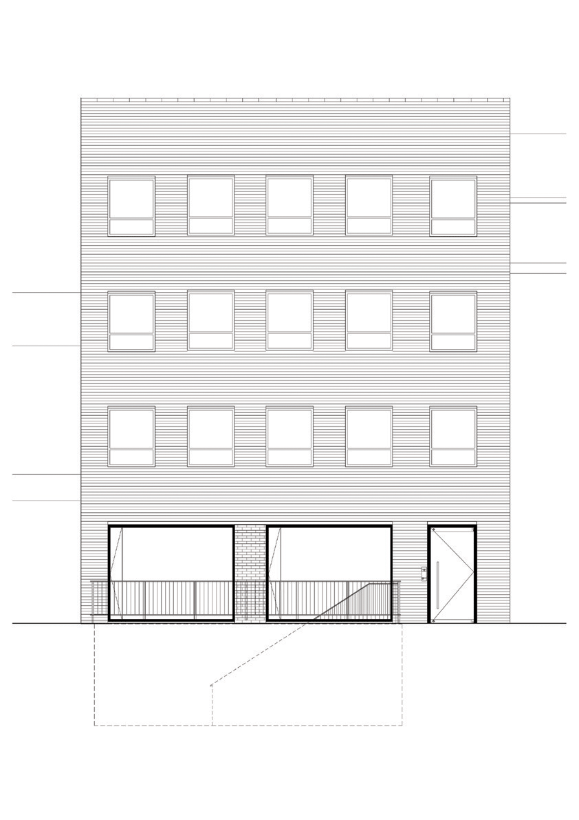 建物のその他の部分全体にあるやや小さめの二次的な部屋は、改善および適応するように改善されました。通りに面したソリッドな通気窓のついたアルミ製継手にはめられた新しいガラス開口部は既存の建物の元々あった特徴を真似たものです。