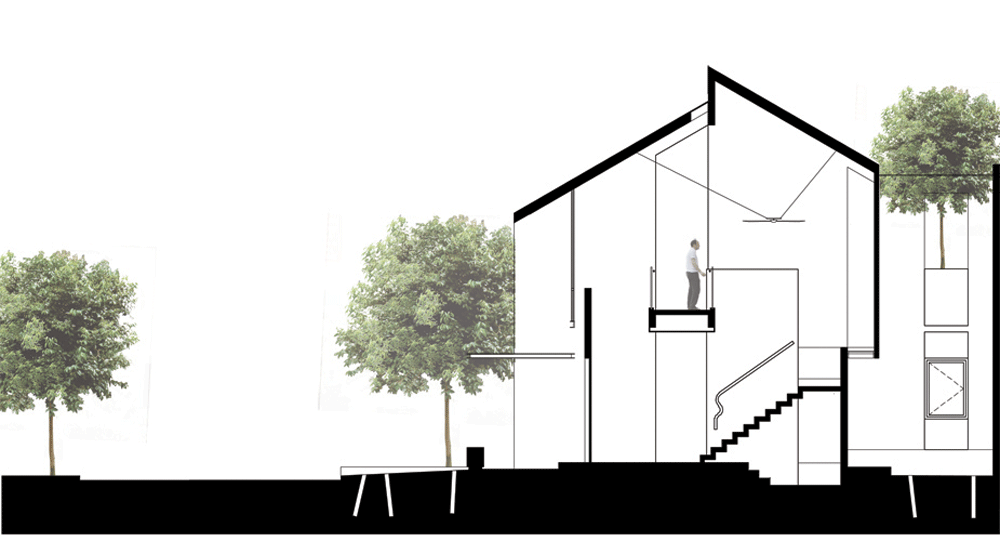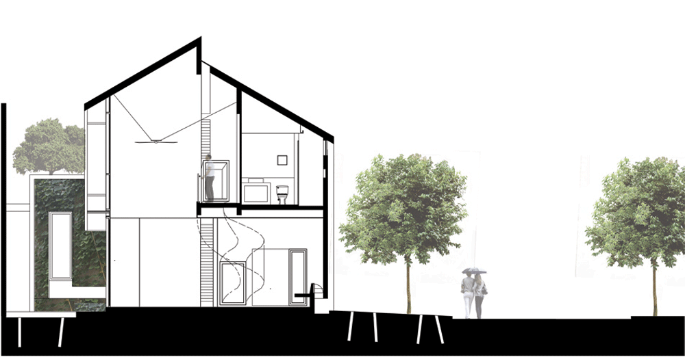 概して、別の落ち着いた外観の家への親しみある様子を醸し出しながら、十分な緑の垂直壁で内部に向かった建物として存在しています。