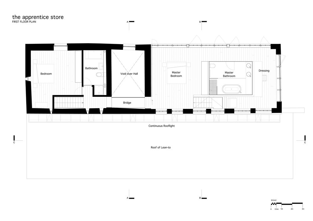 数年に渡って、元「アプレンティス・ストア」は4棟の建物がさらに加えられ、この新しいコンバーションでは階段や通路の数々によって全ての建物をつなげている。それらは中央の壁周りで起伏しており、住宅の周囲に循環経路を設けている。
