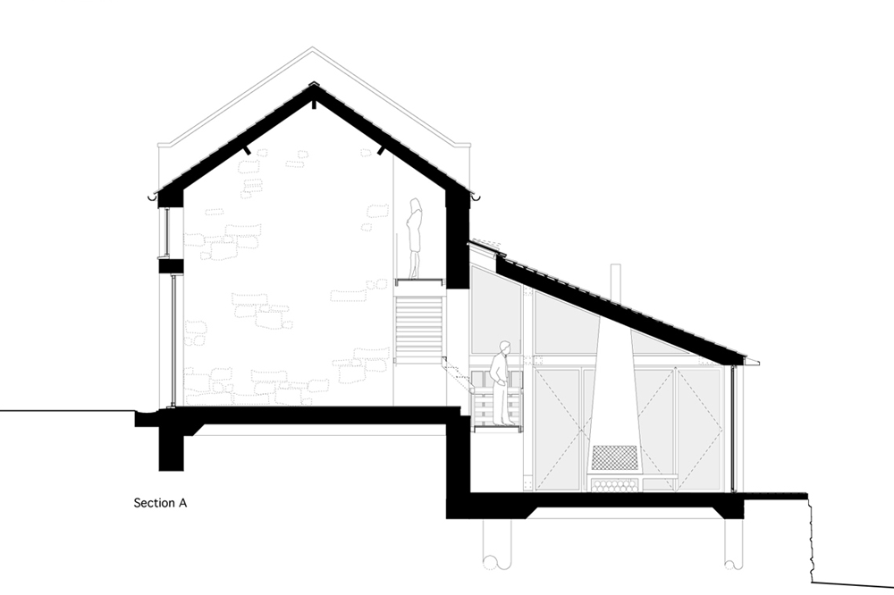 接続する新しい片流れ屋根の構造はバースストーンの耐力壁の上方に設置されました。