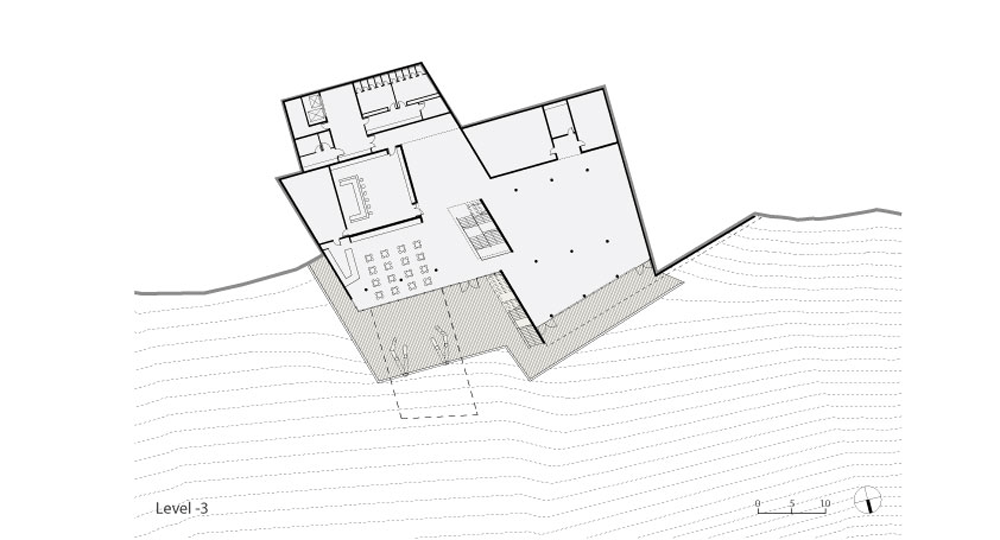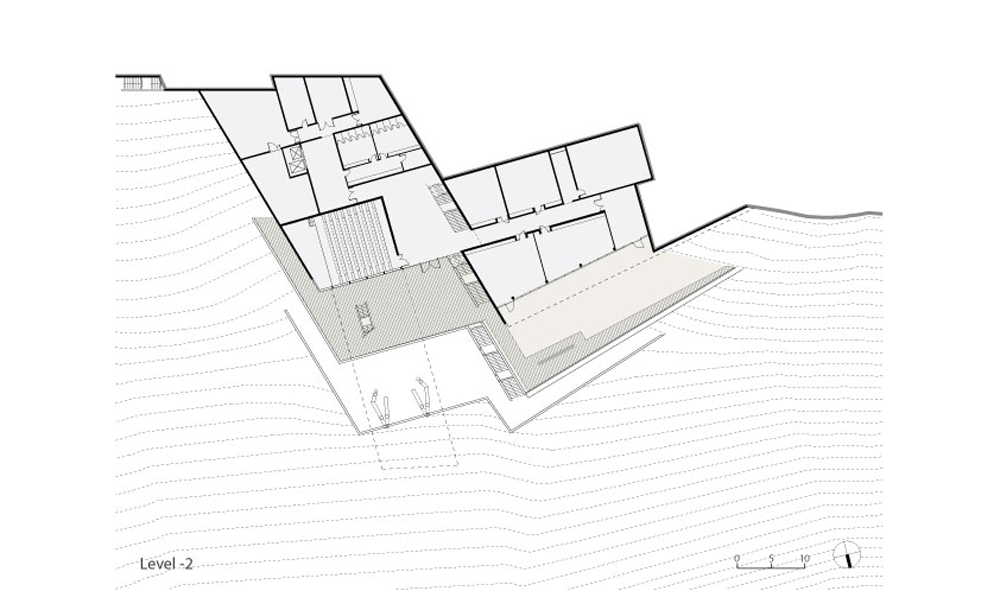 スチューデント・センターの建設用に選ばれた敷地は湾岸および深い山麓を見下ろし、急斜面の地形になっています。