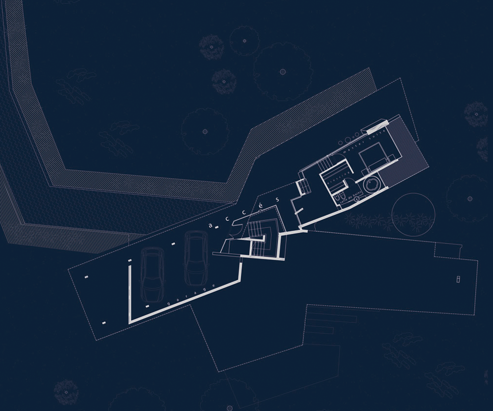 住宅の公的空間と私的空間、そして社会的および家庭生活の間の異なるボリュームを並置することで、住人が家の異なる箇所を移動する際にダイナミックな動線を与えます。