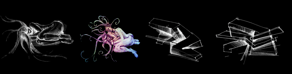 強さが繊細さに、固さが軽さに変化し、支持しながら支持され、動が静に変換し、またその逆の状態を実現するために、この形態学およびこれらのマテリアルを適用しました。