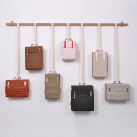 「Home Traveller」はドイツのカールスルーエの造形大学においての私自身の卒業制作の一部でした。これはハンドバッグと家具の原型を利用して組み合わせたものです。この移動可能な収納家具は一つの場所から他へ容易に持ち運べ、アクセサリーのように生活空間の中で配置できます。普通の家具と違って、このバッグ型家具は室内に固有の場所を必要としません。チェストのように十分な収納力がありながら、フレキシブルに使うことができます。