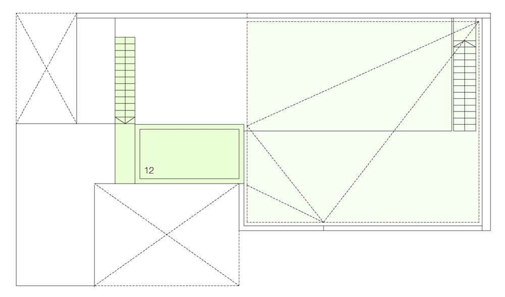 最後の仕上げとして、周囲の建物の不規則に並ぶ壁を利用してテント状の覆いを張り、新しい住宅に相応しい開放感と機能性を備えた空間を構築します。
