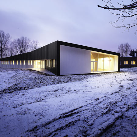 ここにあるサッカー練習場(ソウェト練習場についてのdezeenの記事はこちらをご覧ください)。今回はスイスのFCバーゼルのジュニアチームのためのフットボールアカデミーで、スイスのスタジオLuca Selva Architektenによるものです。