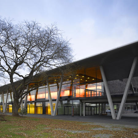 メルボルンの建築家ライアンズ(Lyon)が設計したタスマニア大学(University of Tasmania)医学部の研究施設は、傾斜窓となだらかなアーチを描いたコンクリートの外観が特徴的だ。