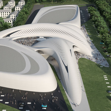 ロンドンに事務所を置く Marks Barfield Architects (マークス・バーフィールド・アーキテクツ)のスティーブン・チルトン氏デザインによる工場を模った青少年センターは、イギリス、バーミンガムのロングブリッジにあった世界で最も大きい自動車工場の跡地に建てられる。