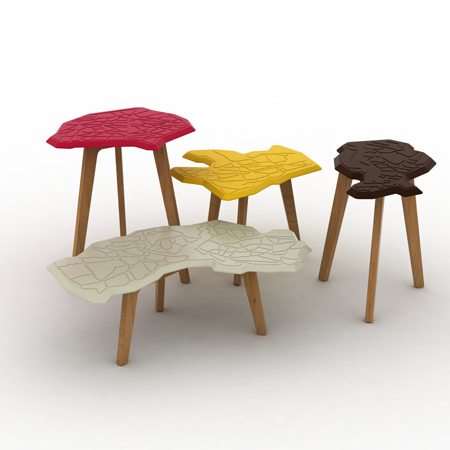 Stockholm 2011: Finnishフィンランド人デザイナーの Sami Kallio が Stockholm Furniture Fair(ストックホルム家具見本市)にて「Greenhouse」の一部として棒付きアイスの棒のような形をした脚のついたこれらのスツールを含む家具のコレクションを発表した。
