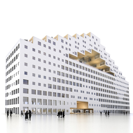 中央の中庭を囲むように建つこの角張った建物はフランスの建築事務所、Manuelle Gautrand Architecture が設計したサンテティエンヌにあるオフィスビルディングである。