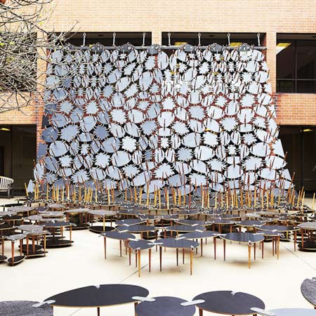 2010年ベネチア・ビエンナーレ建築展:8月29日に始まった2010年ベネチア・ビエンナーレ建築展(Venice Architecture Biennale) のカナダパビリオンのトロントの建築家フィリップ・ビーズリー(Philip Beesley)氏によるインスタレーションが、アクリル製の樹木の葉がまるで呼吸をしているかのような動きを見せている。