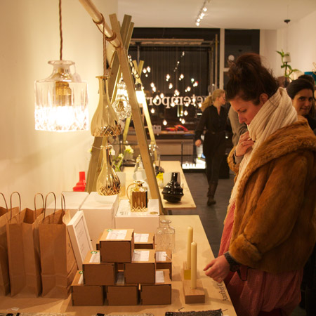 ニューヨークのデザインショップKIOSKの商品が、ロンドンのデザインブランドSCPのポップアップスペースで展示された。空間デザインはイギリスのデザイナーマイケル・マリオット氏によるもの。