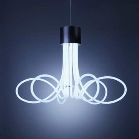 Stockholm 2011:ロンドンのデザイナー、ベンジャミン・ヒューバート氏が先頃開催されたストックホルム国際家具見本市(Stockholm Furniture Fair) にて発表した作業用ランプは、小穴の開いた管状の蛍光部が特徴的だ。