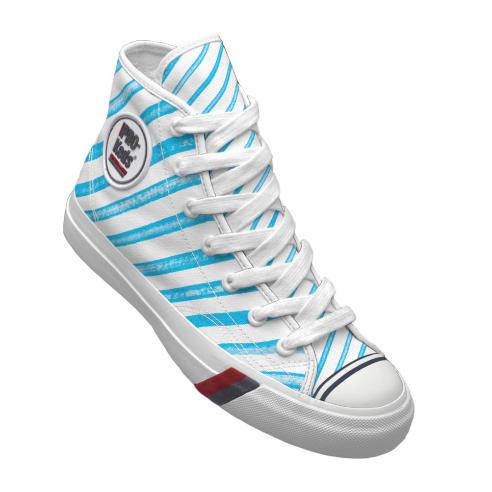 本展では、160人のアートディレクター、デザイナー、イラストレーターが「シューズ」のデザインに挑戦しました。ベースは、アメリカのスニーカーブランドPRO-Keds(プロケッズ)のベーシックなキャンバスシューズ。ハイカットまたはローカットのいずれかのタイプでクリエイターが制作したデザインを、インクジェットプリントし、シューズに加工します。