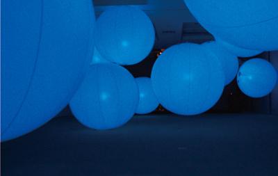 空間に浮遊する、さまざまな色の光の塊。